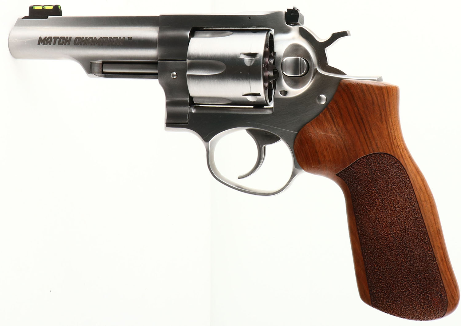 New & Cased Ruger, GP-100 Match Champion, CAL: 10mm, MFG: Modern, SN: 178-75691, Double Action Revolver, 4 1/4'' barrel. The checkered wood grips are excellent. The polished stainless steel finish is excellent. Bore is minty. The frame & barrel hold factory sights, front sight has green fiber rod, rear has shite U. Comes with hard case, owners manual & lock, NOS. FFL Req. - Value: 500 to 750