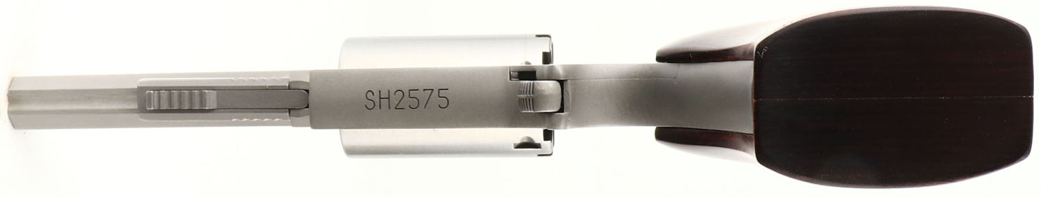 North American Arms, ''The Earl'', CAL: 22 MAG, MFG: Modern, SN: SH2575, Single Action Revolver, 2 1/2'' octagon barrel. The original wood grips are excellent. The stainless steel finish is excellent. Bore is excellent, near mint. The frame has an integrated rear groove & the barrel carries a post front sight. Comes in a lockable hard case, with paperwork & key. FFL Req. - Value: 300 to 400