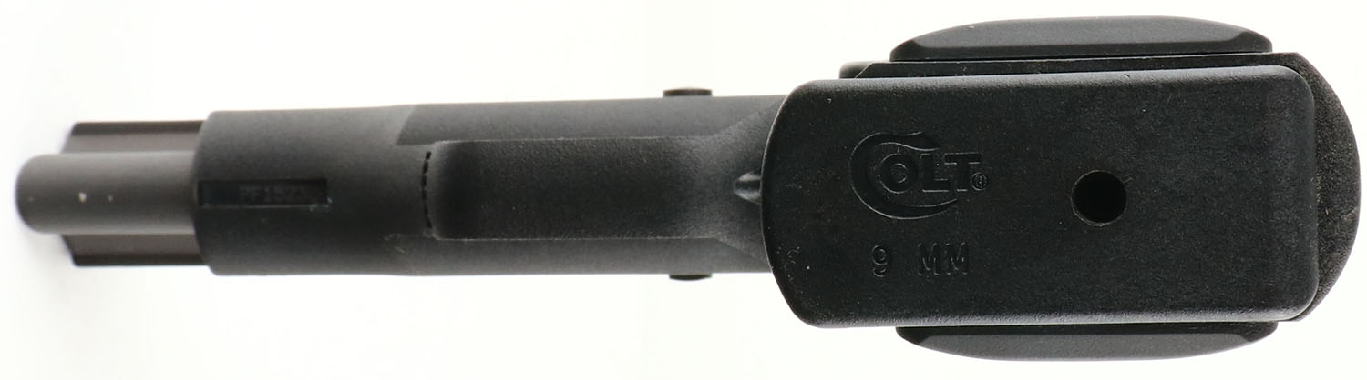 CASED, Colt, All American Model 2000, CAL: 9mm, MFG: 1993, SN: PF15230, Semi Auto Pistol, 4 1/2'' barrel. The Colt logo medallion checkered plastic grips are excellent. The factory matte black finish rates 99%, with minor storage marks. Bore is excellent. Factory white dot sights. Comes in factory hard case, with related paperwork, speed loader, alan wrench, cleaning brush/rag. FFL Req. - Value: 400 to 600