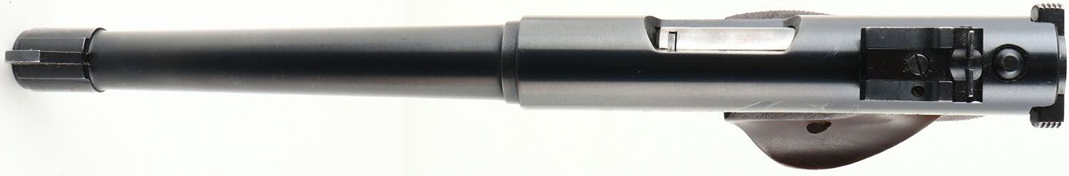 BOXED Ruger, Model Mark I Target, CAL: 22 LR, MFG: 1966, SN: 334823, Semi Auto Pistol, 6 7/8'' barrel. The checkered thumb rest factory walnut grips, with black Ruger Phoenix on a silver background are excellent. The factory metal blue finish rates 99%+ overall. Bore is excellent & bright. The frame holds an adjustable rear sight & Partridge front sight. Comes in the original red & yellow box, with factory booklet & warranty card. FFL or C&R Req. - Value: 500 to 1000