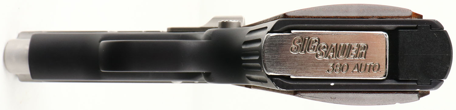Sig Sauer Custom Shop, Model P238 SAS, CAL: .380 AUTO, MFG: Modern, SN: 27A006161, Semi Auto Pistol, 2 3/4'' barrel. The Sig Sauer checkered & textured wood grips are excellent. The matte black finish on the frame rates 99% & the stainless steel finish on the slide is excellent. Bore is excellent. The slide holds SIGLITE Day/Night sights. From Sig: The P238 SAS features the SIG Anti-Snag carry melt treatment applied by the SIG custom shop. The SAS process aggressively dehorns all of the edges and rounds all of the corners resulting in a comfortable ultra smooth profile that is ideal for concealed carry. FFL Req. - Value: 500 to 700