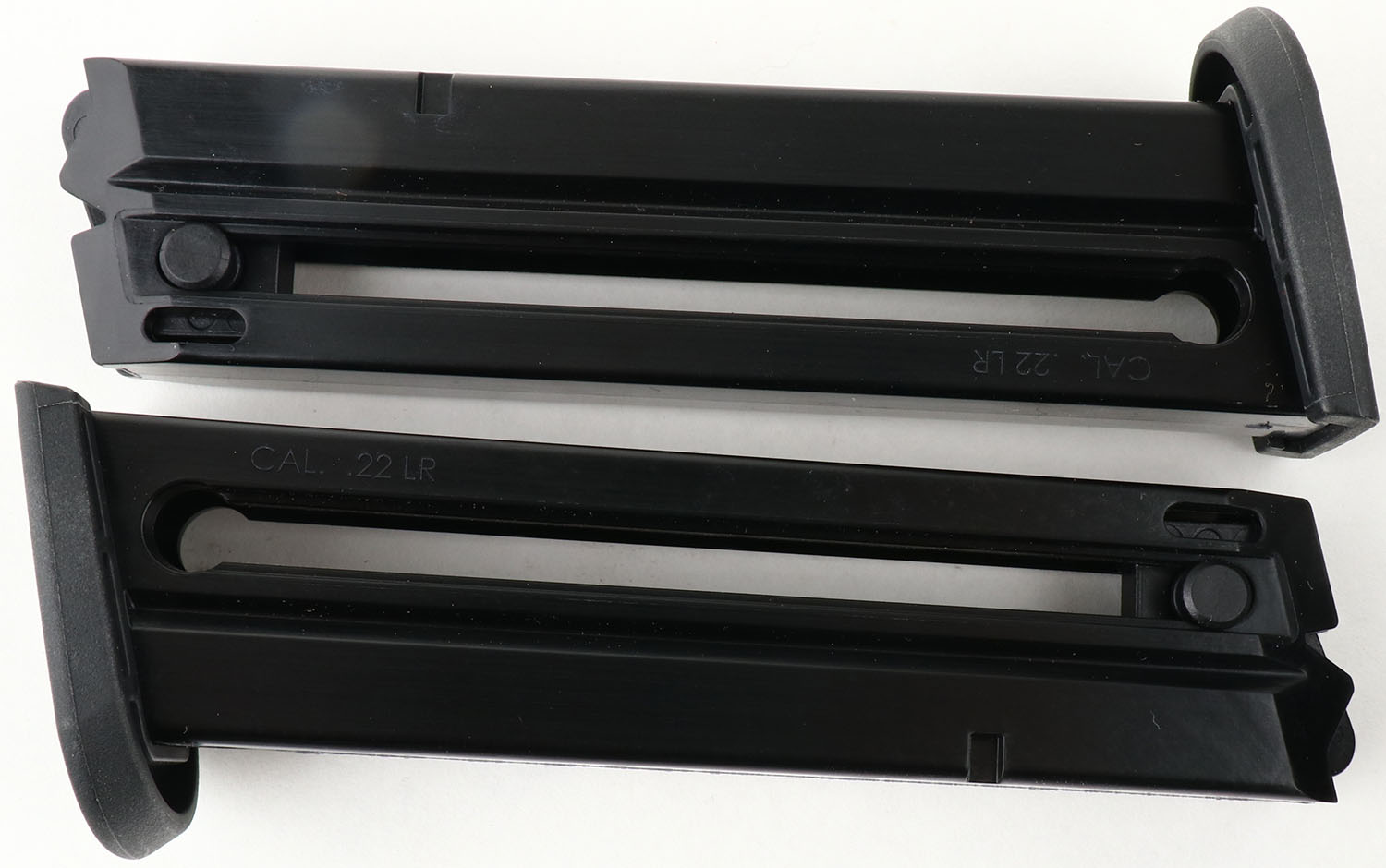BOXED Taurus, Model TX22 Competition, Cal. .22 LR, Semi-Auto Pistol, Mfg. Modern, SN: 1PT449335, 5 1/4'' barrel, The original grips are excellent, Original mate blue finish is 100%, Bore is excellent, Has factory white dot sights front & black, BLACK OPTICS READY COMP. Original box, with paperwork, lock, speed loader & (2) extra 16 rd mag. Gun store inventory, NOS. FFL Req. - Value: 400 to 600