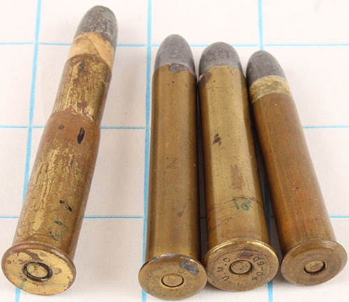 Lot of 4. (1) 38-50 Remington, HS:''U.M.C. H 38-50 S'', FN Lead. (1) 38-40 Remington, 1.77''case. NHS, FN Lead. (1) 40-70 Sharps & Remington bn (2.25'' case), NHS, FN PP Lead. (1) 40-60 Marlin, HS:''U.M.C. 40-60'', FN Lead. Grade: Very Good ++ - Value: 2 to 50