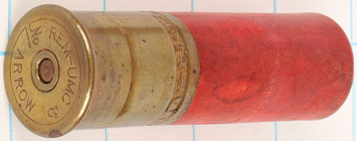 H/S= '' REM-UMC No 8 Arrow'' 3 3/16'' OAL. Loaded red paper case. Grade: Excellent + - Value: 10 to 80