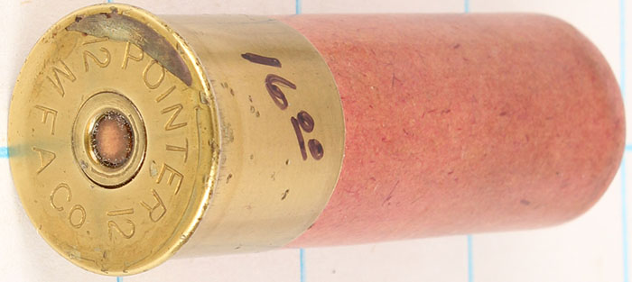 H/S= ''POINTER MFA CO. 12 ga'' 2 1/2'' OAL. Loaded red paper case. Grade: Excellent - Value: 6 to 30