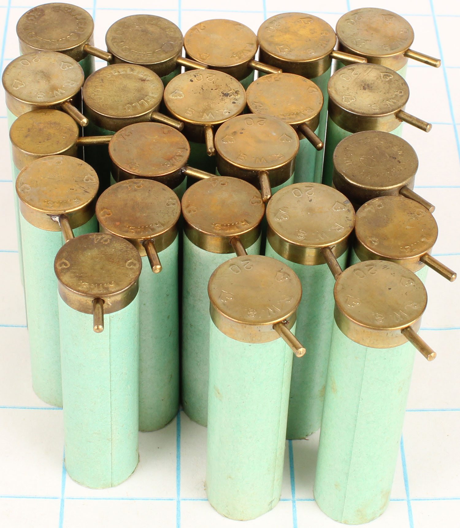 Large lot of empty pinfire shotshells, green paper case. Grade: Very Good ++ - Value: 10 to 50