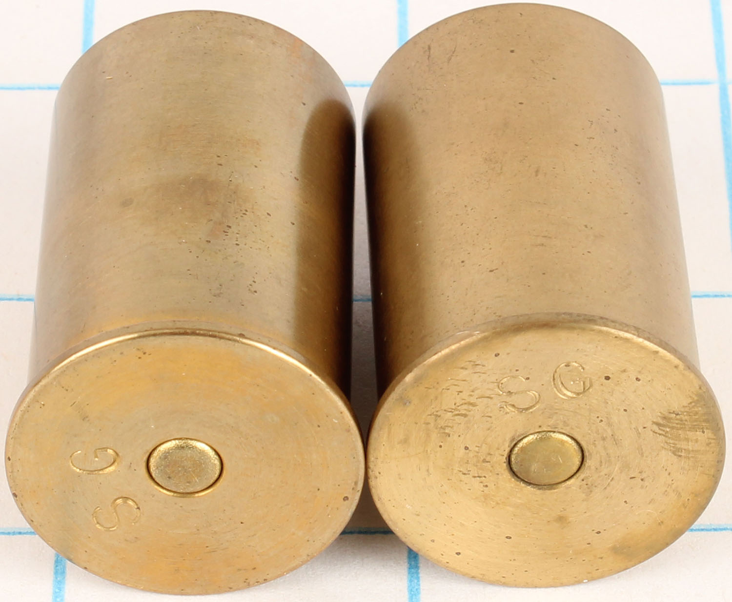 Lot of 2 RARE, 8ga Harpoon gun shells form Nome AK, H/S= ''SG'' 1 1/2'' OAL. Grade: Excellent - Value: 20 to 200