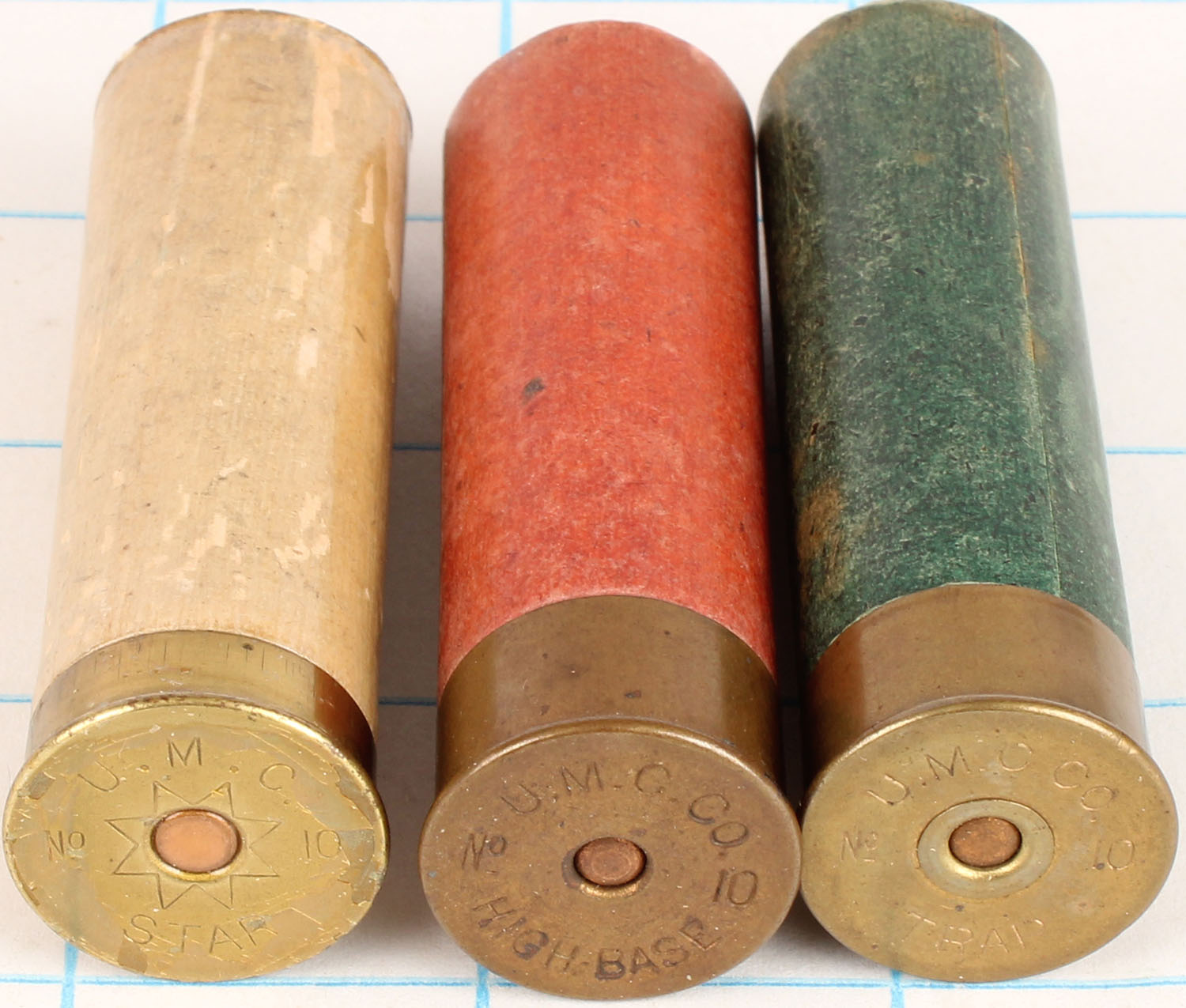 Lot of 3 ''U.M.C.CO 10 ga'' 27/8'' OAL. Empty paper cases. - Value: 6 to 30
