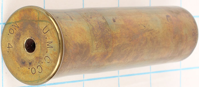 H/S= ''U.M.C.CO. No 4'' 3 15/16'' OAL, unprimed empty brass shotshell. Grade: Excellent - Value: 10 to 50