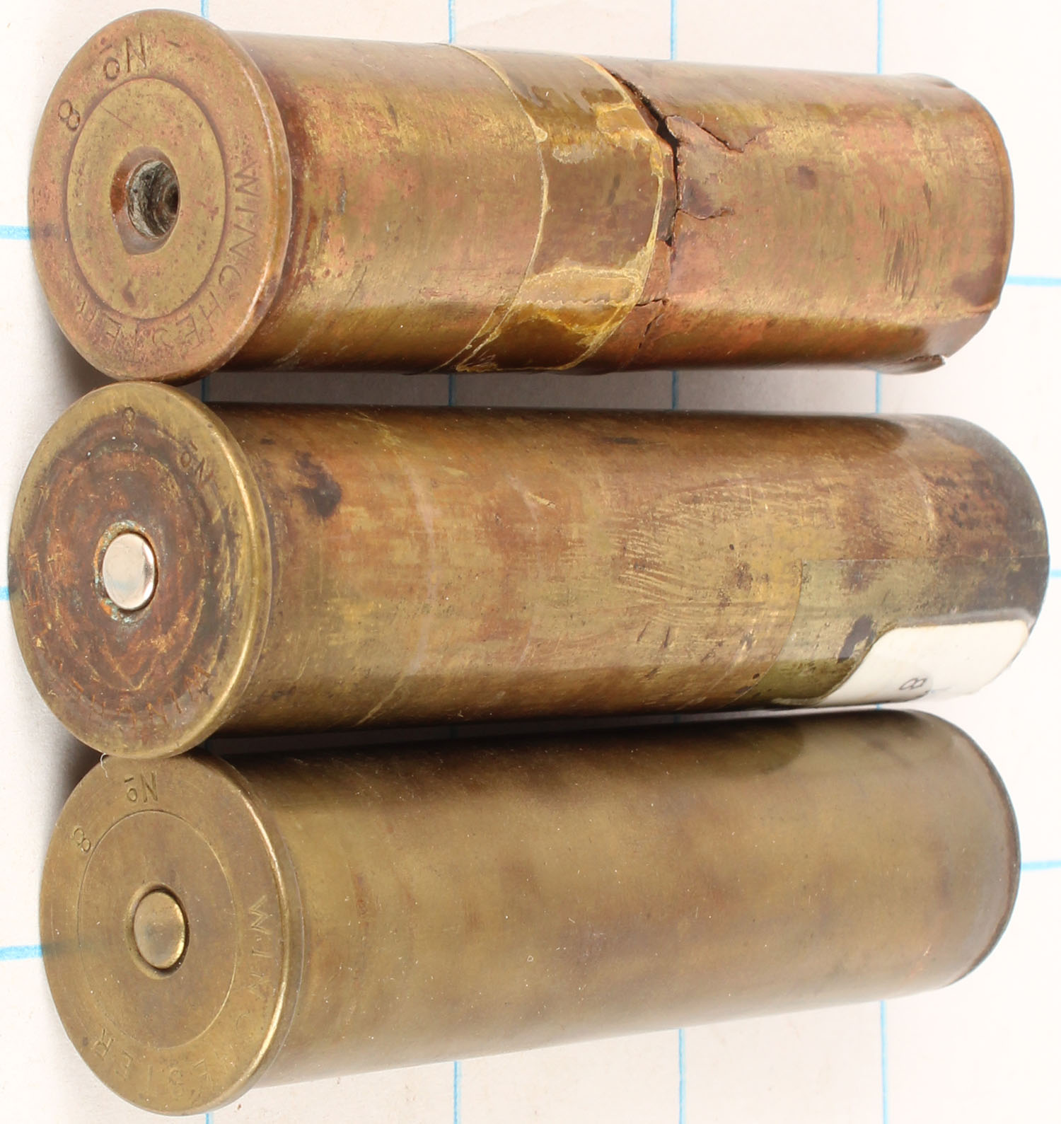 | Lot of 3 H/S= ''Winchester No 8'' empty brass shotshells. G...