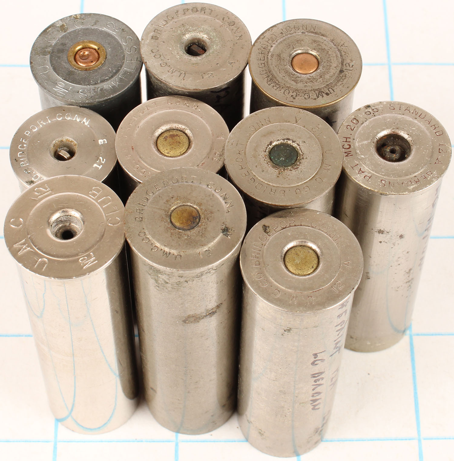 | Lot of 10 empty nickel shotshells, 12ga. Grade: Very Good ++ ...