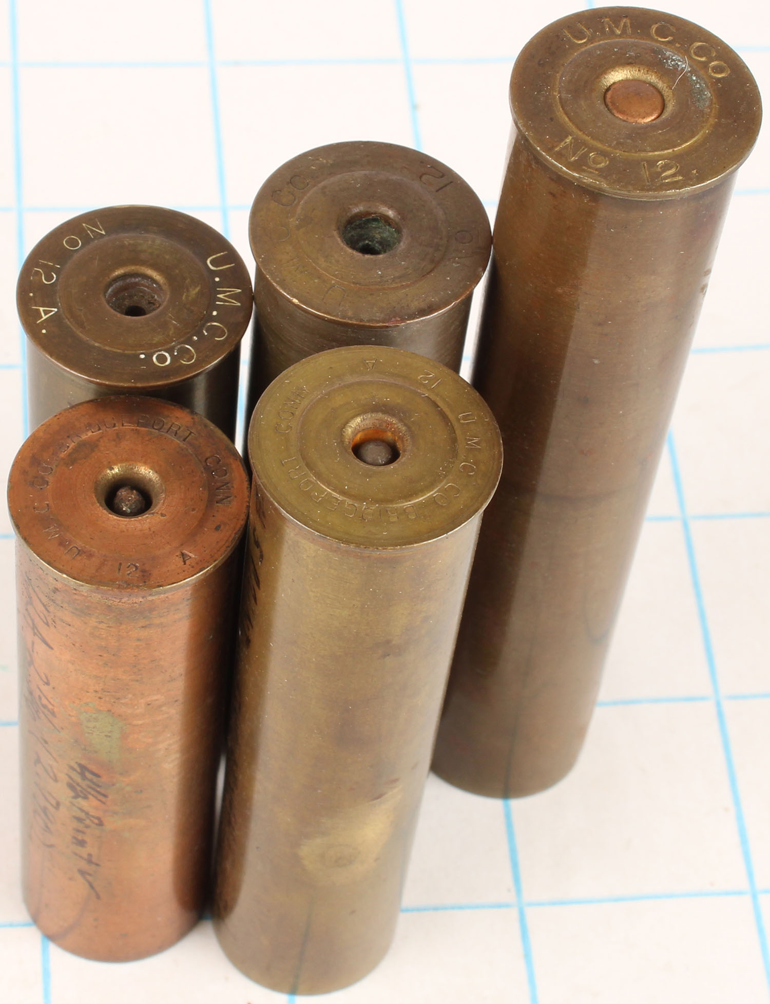 | Lot of 5 empty brass shotshells, U.M.C. 12ga. Grade: Very Good ...