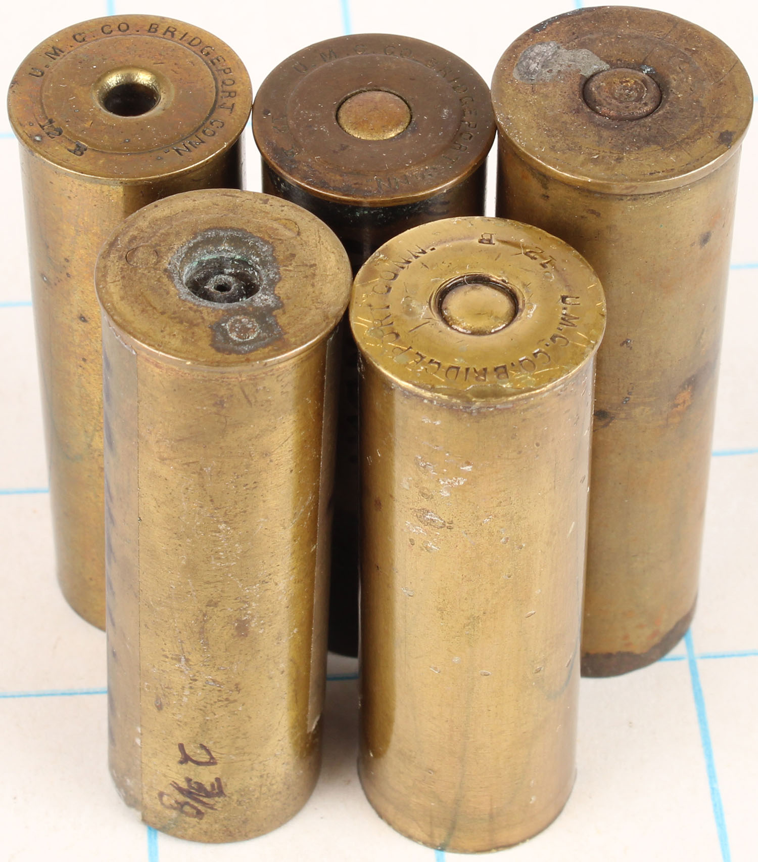 | Lot of 5 empty brass shotshells, U.M.C. 12ga. Grade: Very Good ...