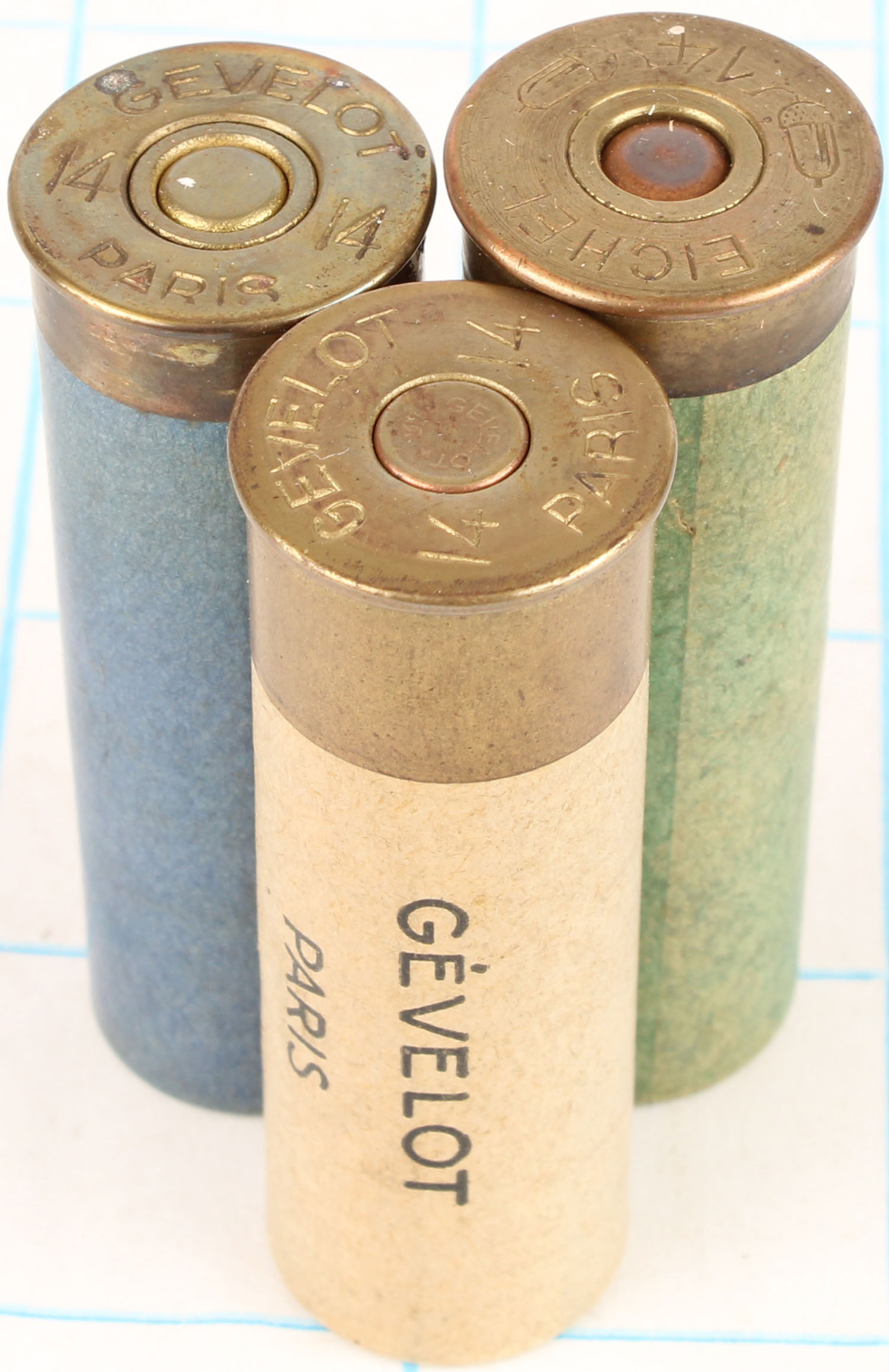 | Lot of 3 loaded shotshells, mixed H/S, 14ga. Grade: Excellent ...
