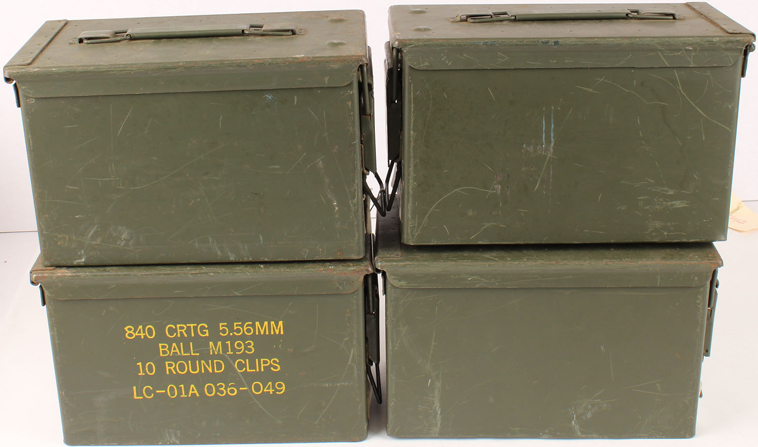 Lot of 4, M2A1 .50 Cal Military ammo cans, All empty, Insides of the cans are clean with no rust. Grade Very good ++ - Value: 30 to 60