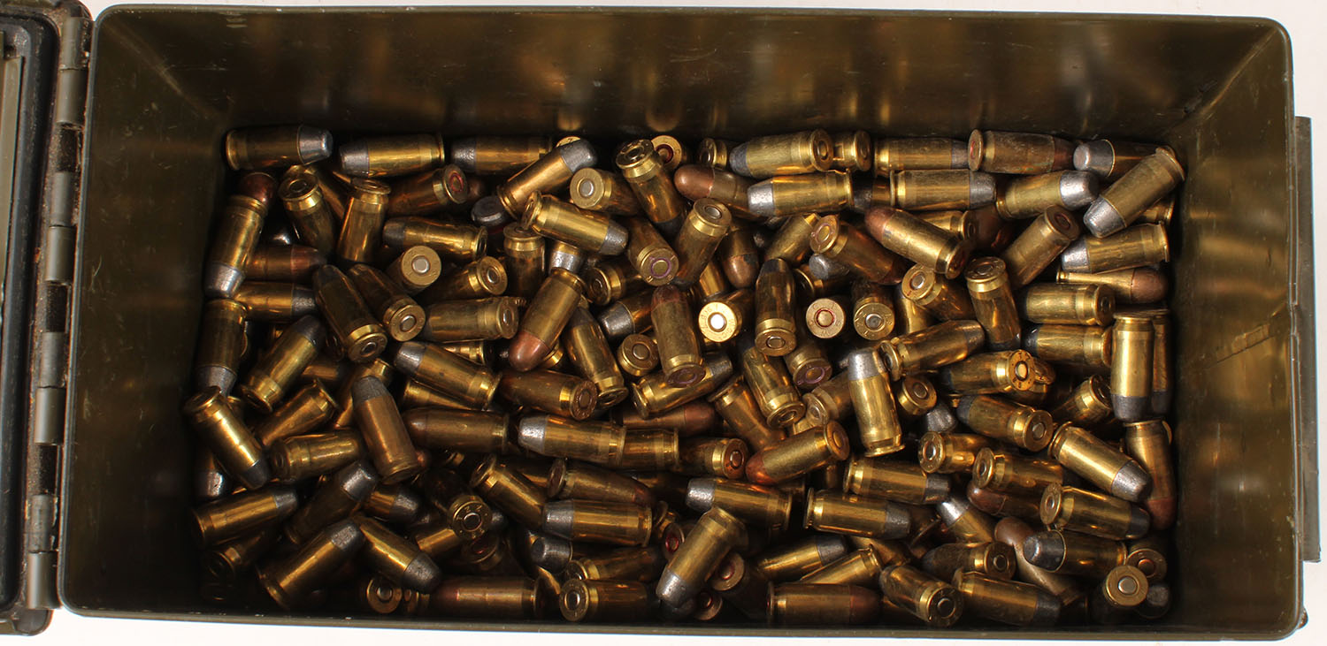 M2A1 .50 Cal Ammo can, Has Appx 500 Rds. Of .45 ACP of mixed MFG., ammo is very good, Inside of can has no rust. Grade: Excellent - Value: 250 to 500