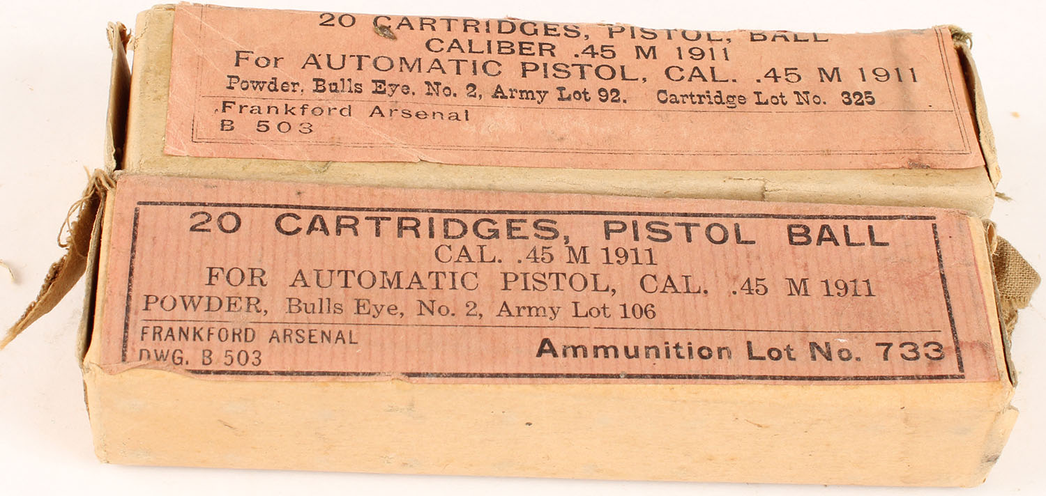 | Lot of two, Frankford Arsenal, .45 M1911 Pistol Ball, both full ...