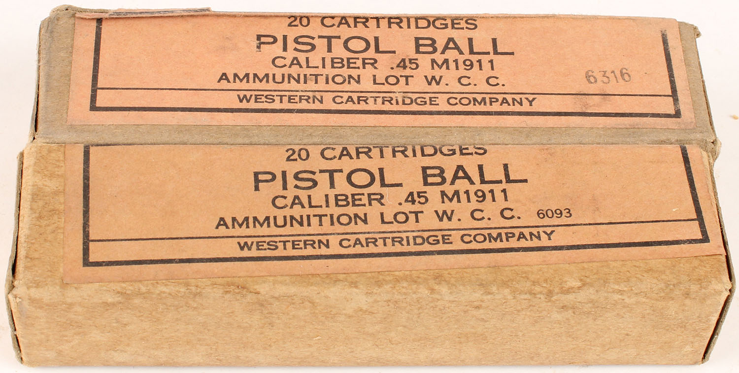 Lot of two, Western, .45 M1911 Pistol Ball, 2pc, Both FULL & SEALED, buff box with orange labels & black print, box are solid with light wear. Grade: Excellent + - Value: 20 to 60