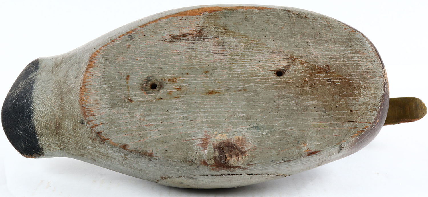 Mallard Drake by Wm E. Pratt Decoy Company, Early Hollow wood, #3 feathering was carved into the back prior to hand painting, original paint shows some wear,, neck is solid but has crack around base,, Ref. Decoy Mag. Nov/Dec 2000. Grade: Very Good ++ - Value: 100 to 300