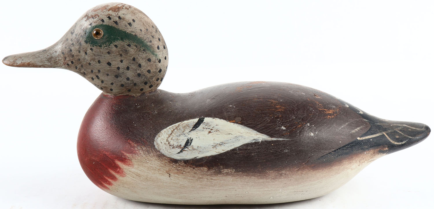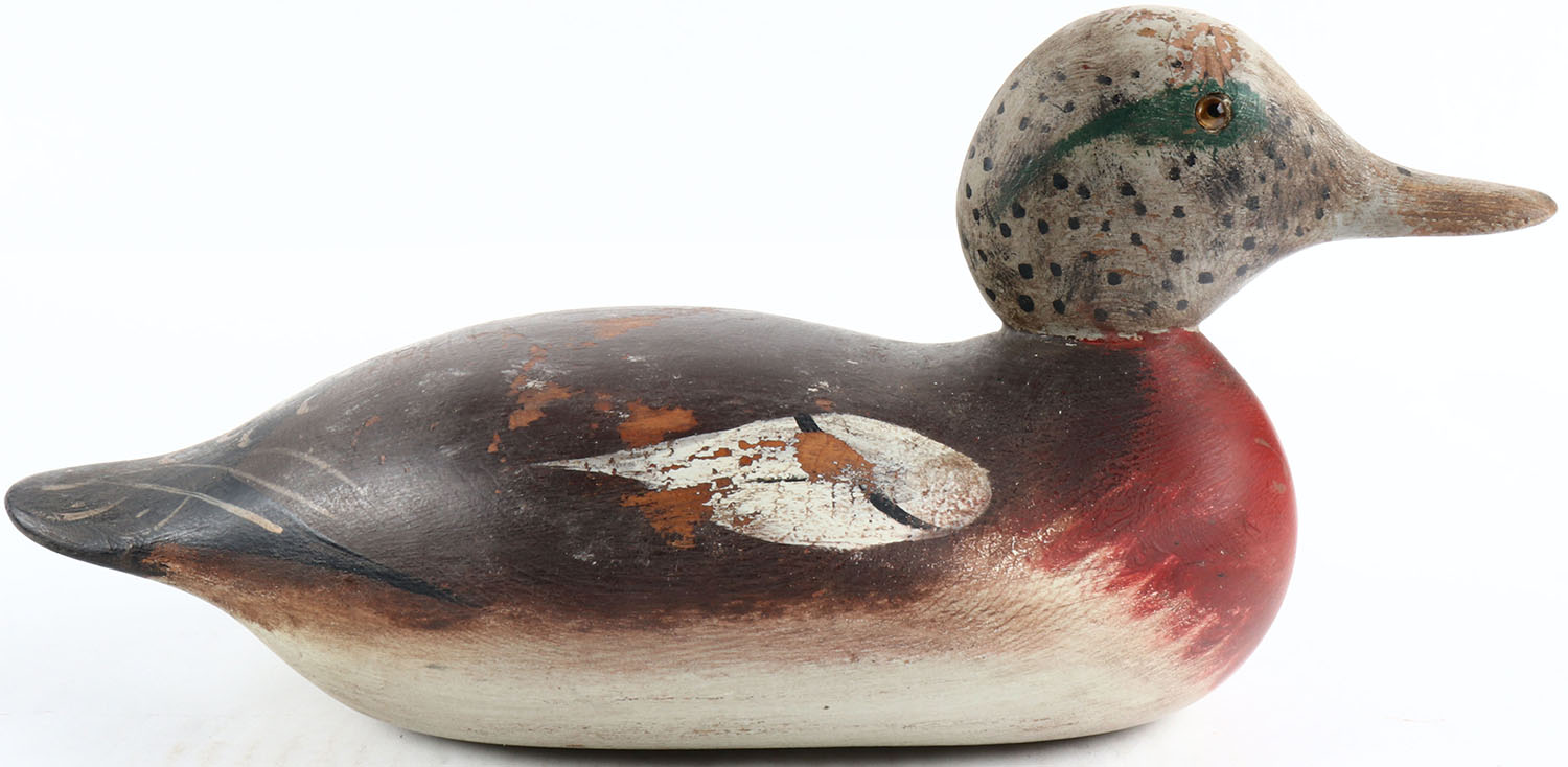 Widgeon Drake by Mason Decoy Company, Detroit, MI, 1896-1924, standard grade, glass eyes, solid wood, orginal paint, has hair line crack to top of head. Grade: Excellent - Value: 100 to 300