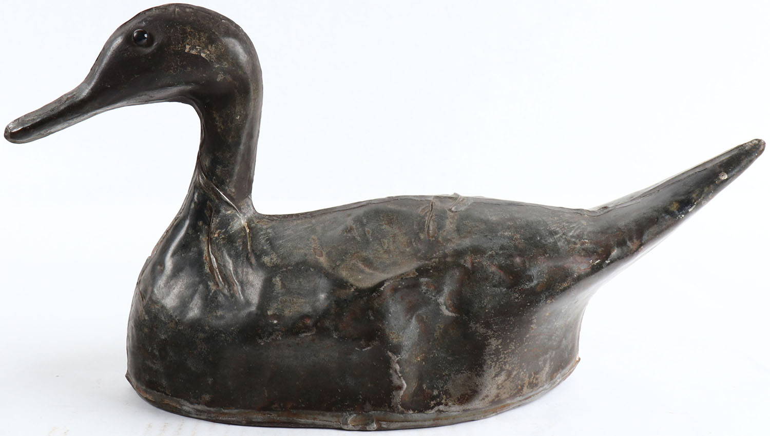 RARE Pintail Drake made by Anderson Decoy, San Francisco, 1928-1930, glass eyes, tin construction, some dents from use, structurally excellent. Grade: Excellent - Value: 100 to 400
