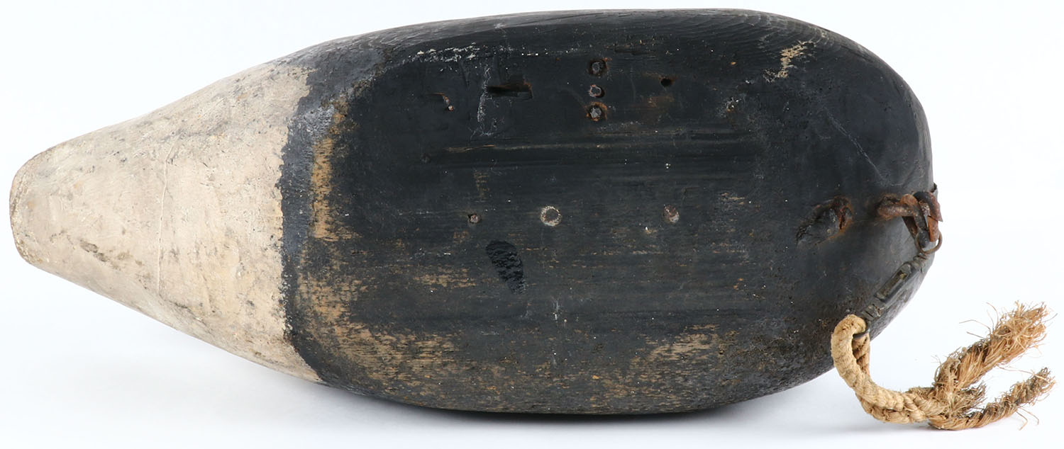 Early Black Brant by unknown maker, no eyes, solid wood, old repaint on head, body is original, structurally excellent, 18'' long. Grade: Very Good ++ - Value: 70 to 150