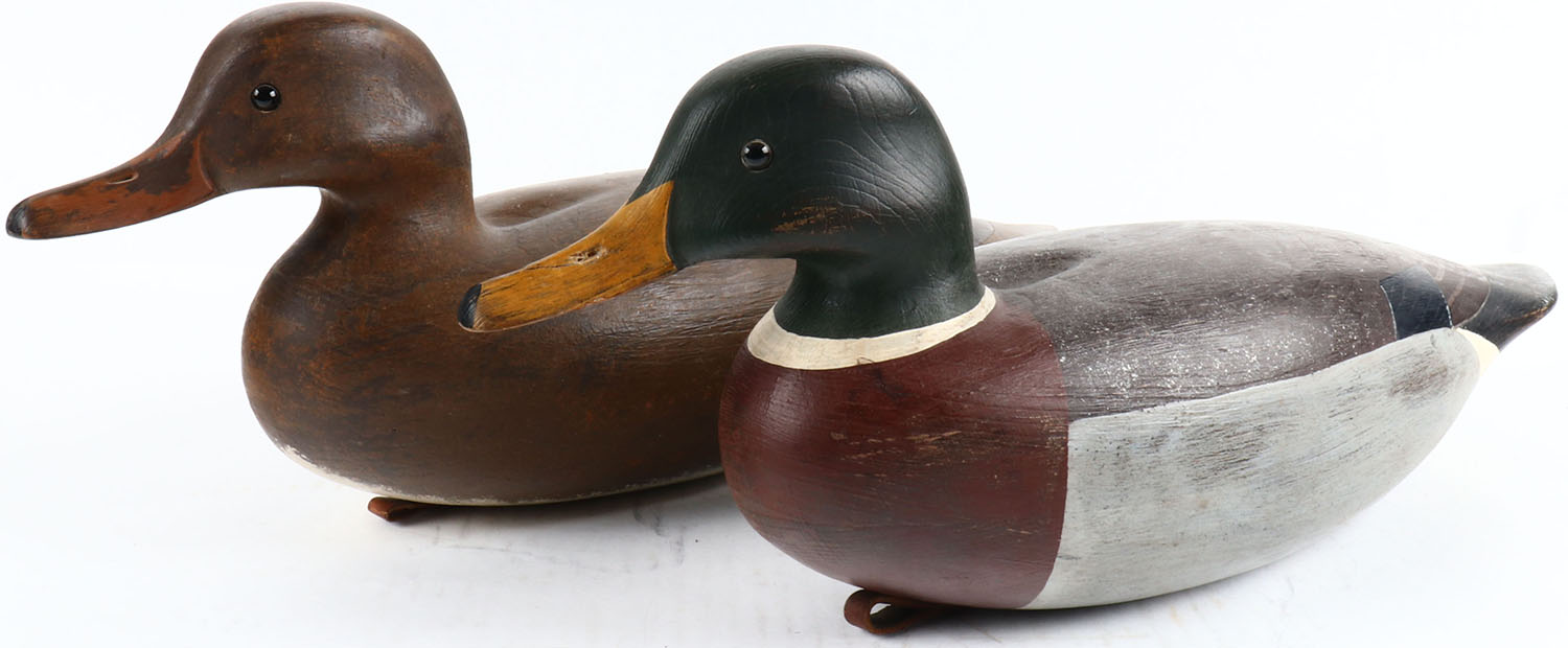Pair of Mallards by Wm. Oler, (son of Walter), Beach Haven NJ, glass eyes, hollow wood, excellent original paint, structurally excellent. Grade: Excellent ++ - Value: 250 to 500