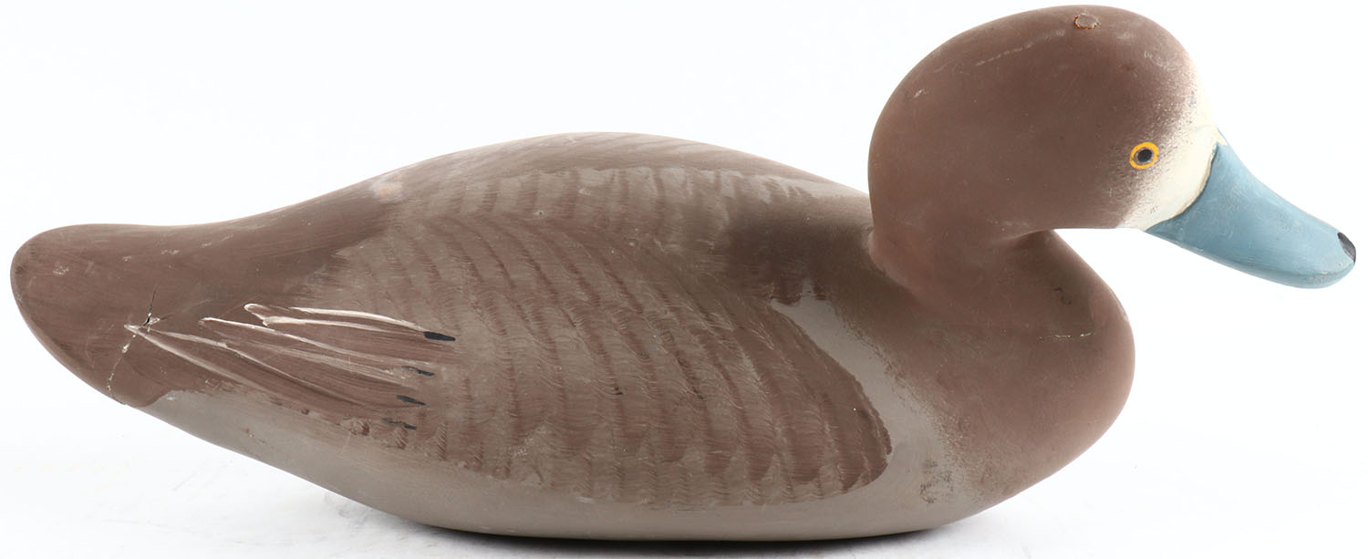 Bluebill Hen by Jim Pierce, Havre de Grace, MD, solid wood, painted eyes, mint original paint, structurally excellent, Stamped with JP. Grade: MINT - Value: 60 to 150