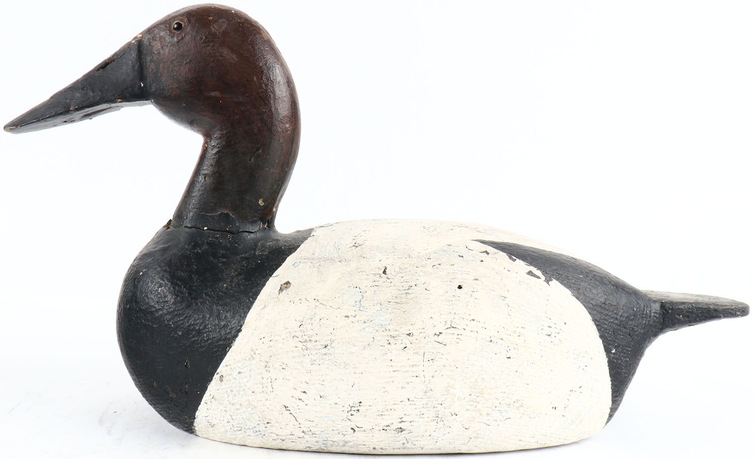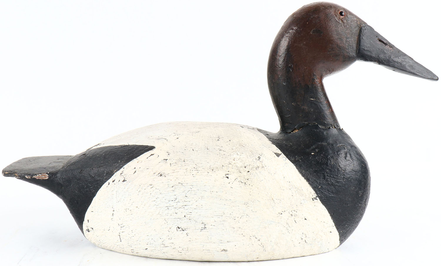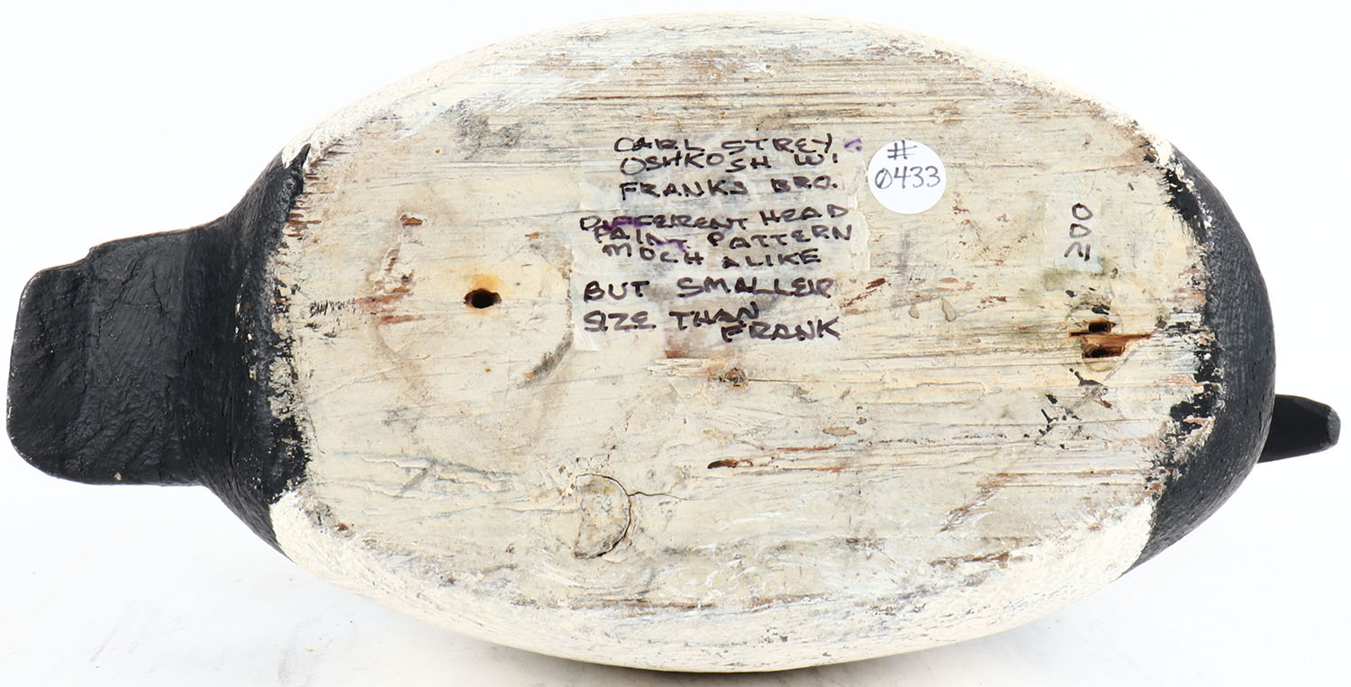 Canvasback Drake by Carl Strey, Oshkosh, WI, Franks Bro. glass eyes, solid wood, original paint, signed on bottom, structurally excellent. Grade: Very Good ++ - Value: 30 to 100