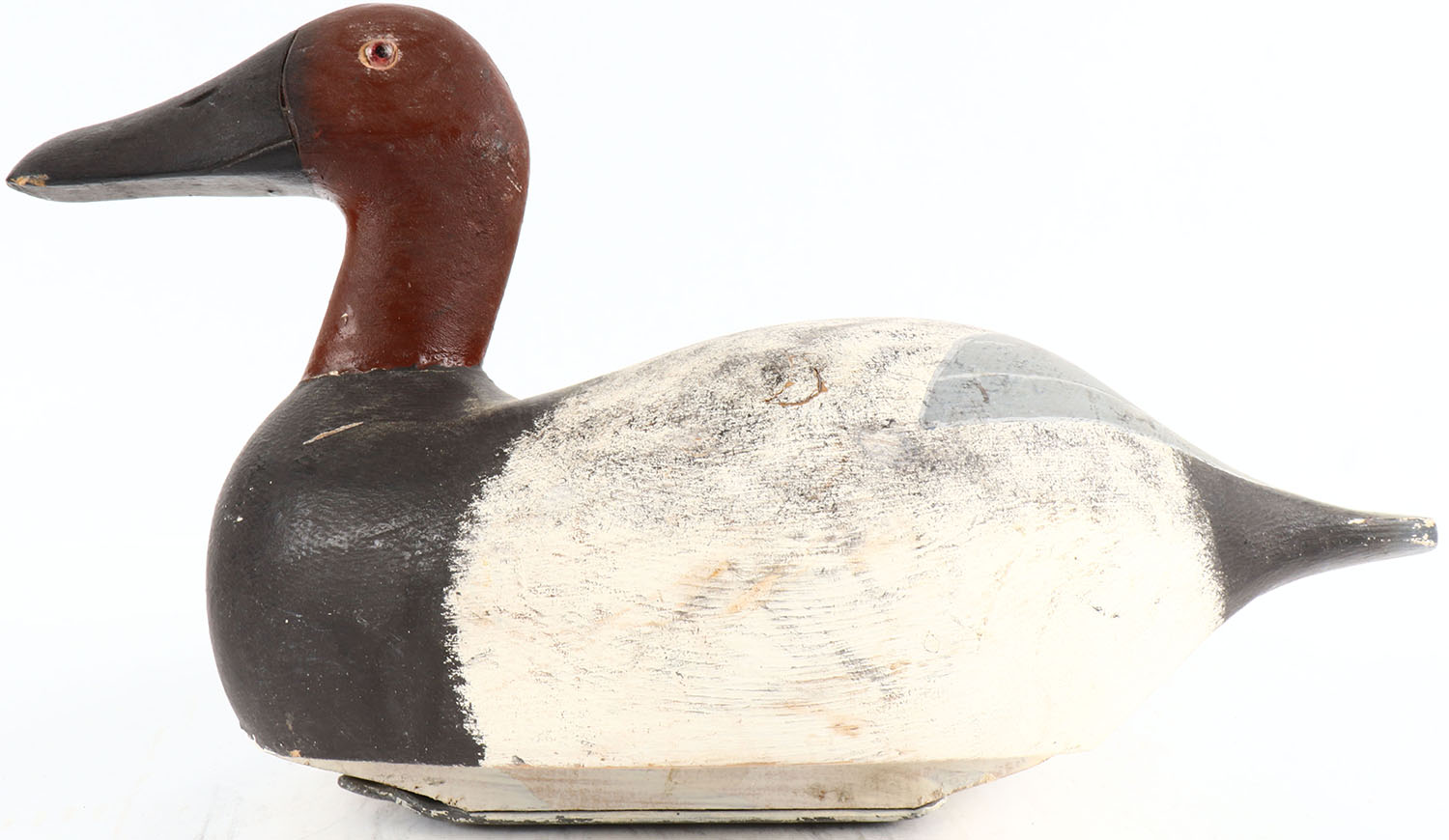 Canvasback Drake by unknown maker, glass eyes, solid wood, original paint, structurally excellent. Grade: Excellent ++ - Value: 30 to 100