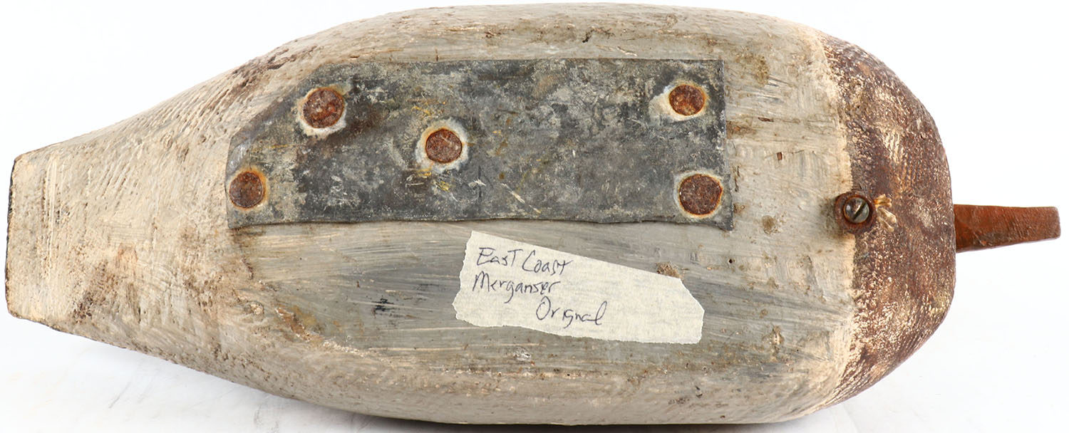 Hooded Merganser by unknown maker, painted eyes, solid wood, original paint, structurally excellent. Grade: Excellent - Value: 30 to 100