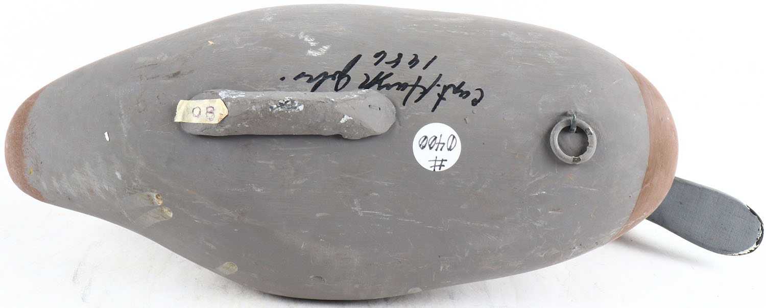 Bluebill Hen by Capt. Harry R. Jobes, Havre de Grace, MD, painted eyes, solid wood, structurally excellent, signed on bottom, original paint. Grade: MINT - Value: 26 to 150