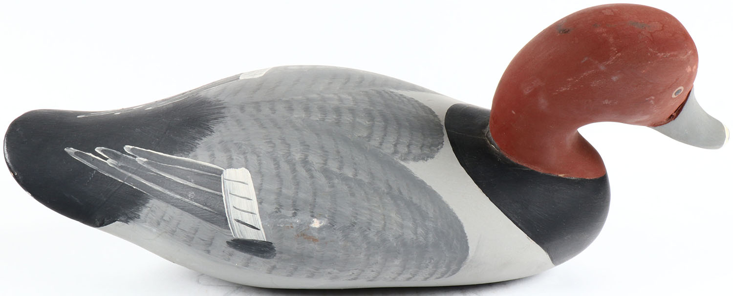 Redhead Drake by Steven R. Lay, painted eyes, solid wood, original paint, structurally excellent, signed on bottom. Grade: Excellent ++ - Value: 50 to 150