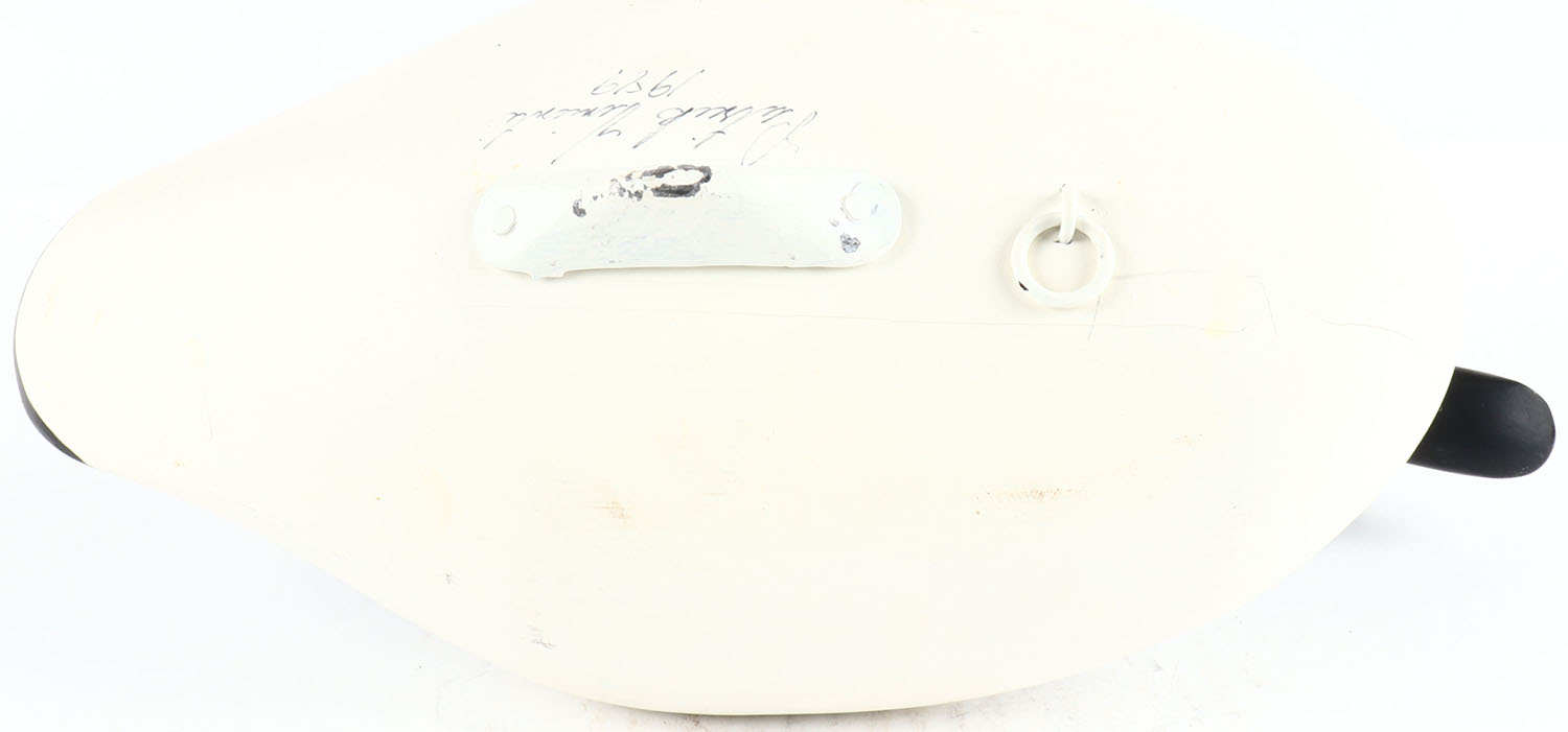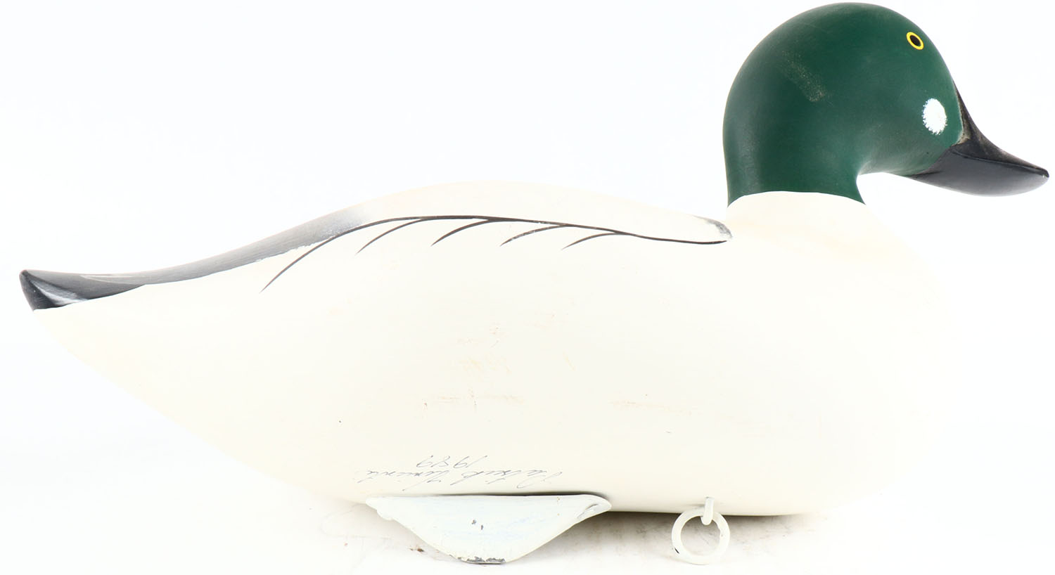 Goldeneye Drake by Patrick ''Pat'' Vincent, Churchville, MD, painted eyes, solid wood, original paint, has age cracks on bottom of body and under head, signed on bottom. Grade: Very Good ++ - Value: 50 to 150