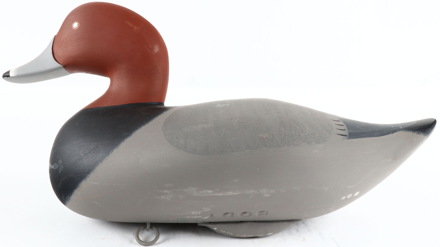 Redhead Drake by Bryon Bodt, Churchille MD, painted eyes, solid wood, original paint, structurally excellent, branded BODT on bottom and signed. Grade: Excellent ++ - Value: 50 to 100