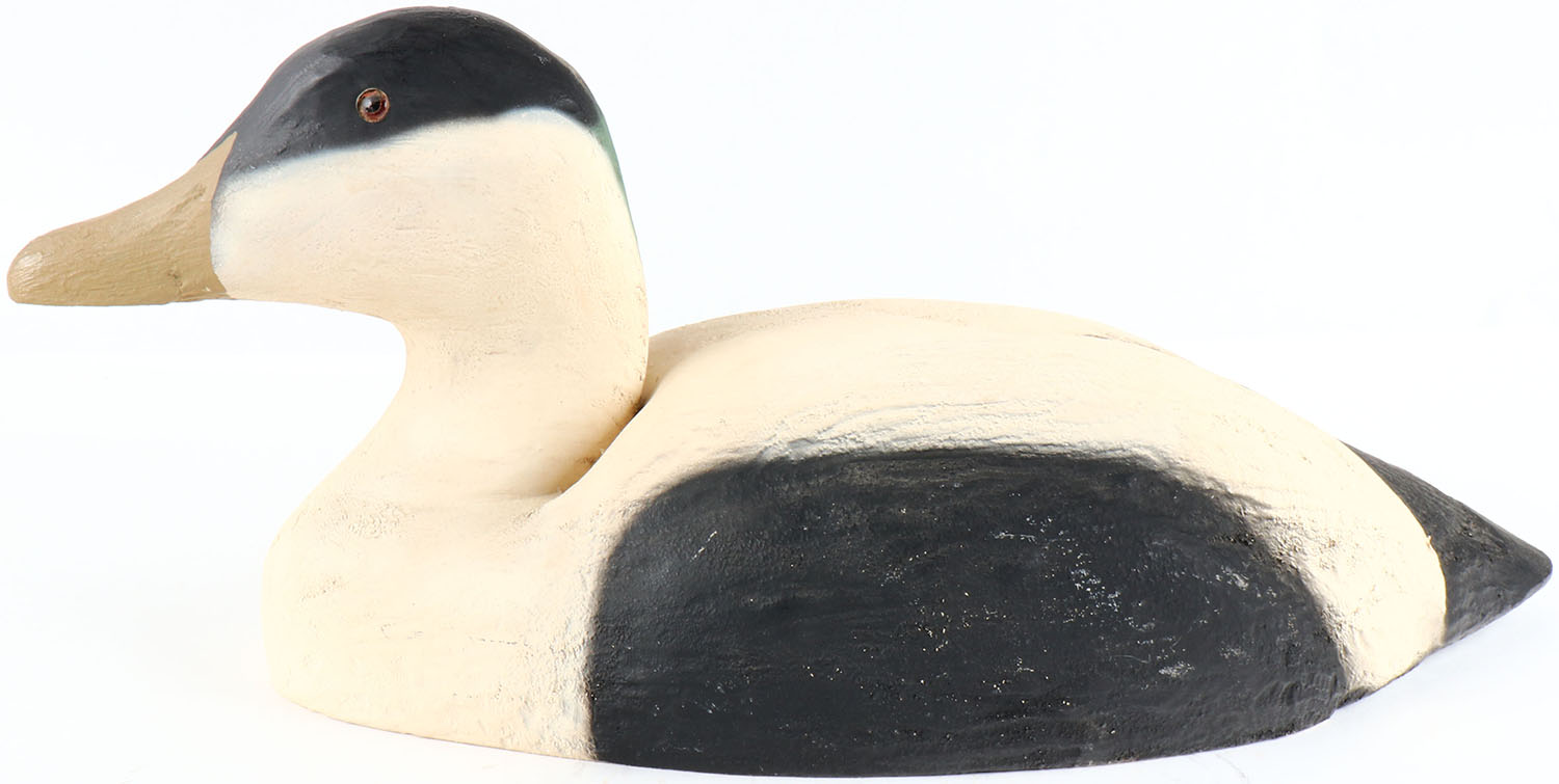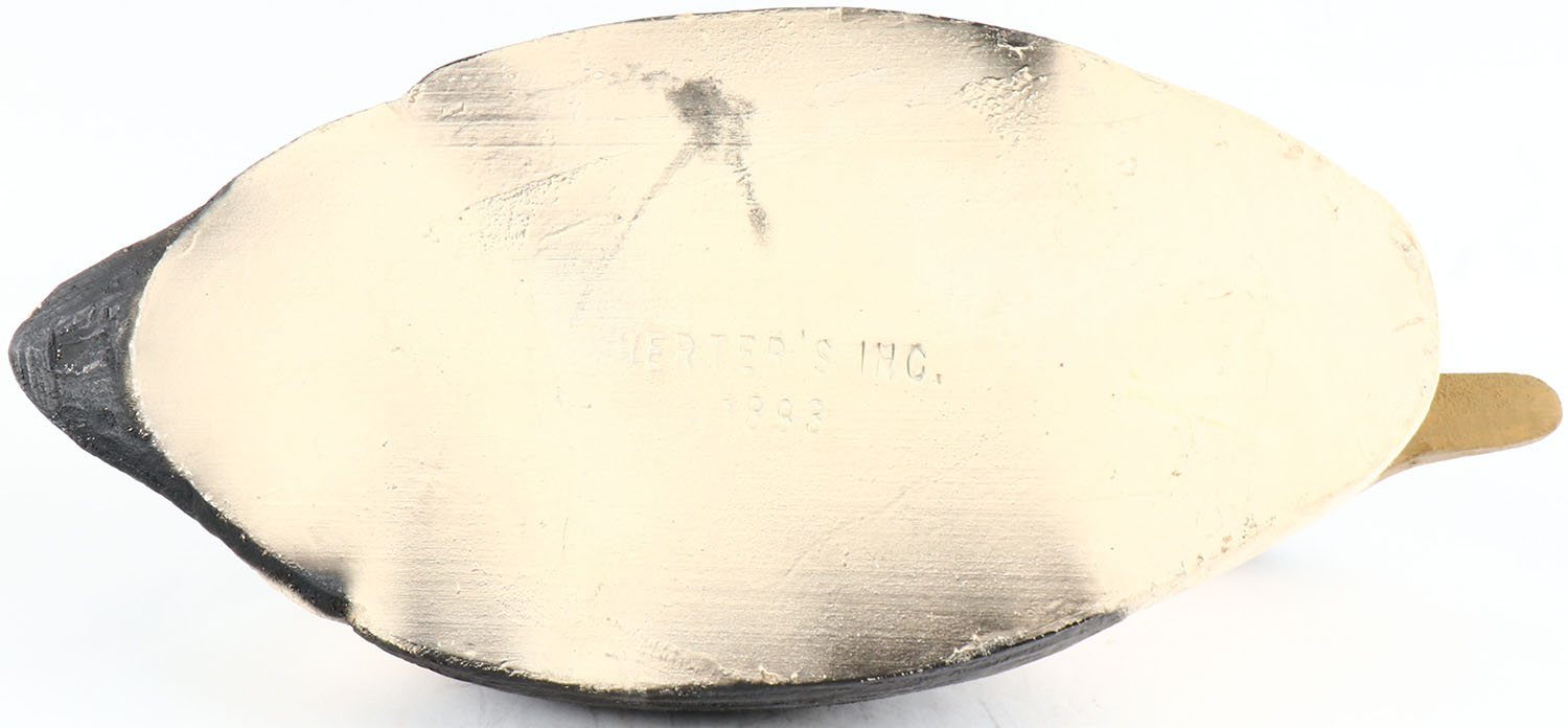 Eider by Herter's Inc, glass eyes, solid wood, original paint, structurally excellent, branded by HERTER'S INC. on bottom. Grade: Excellent + - Value: 50 to 100