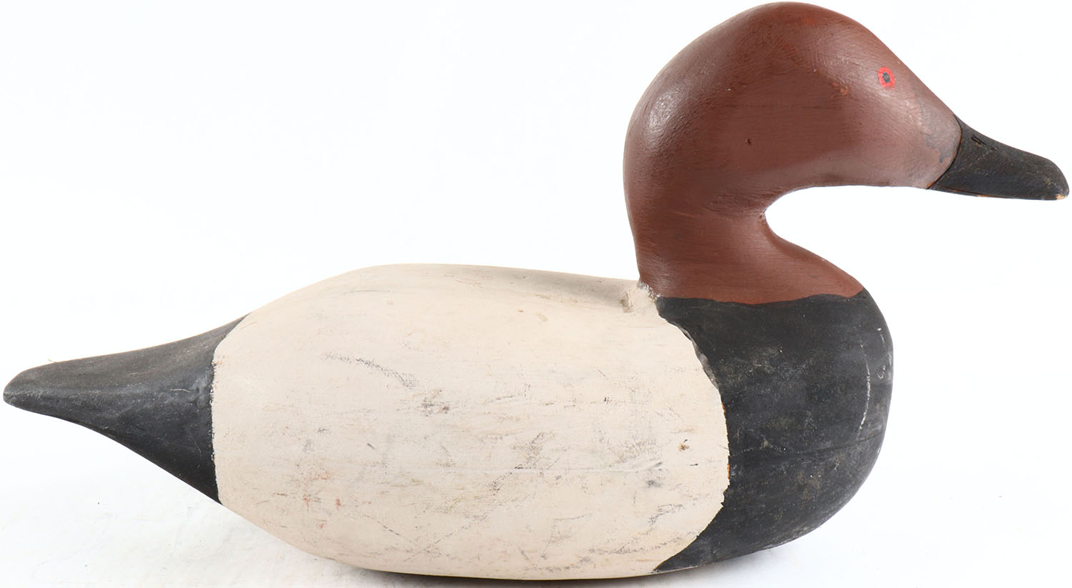 Canvasback Drake by unknown maker, painted eyes, hollow wood, original paint, structurally excellent. Grade: Excellent ++ - Value: 50 to 100