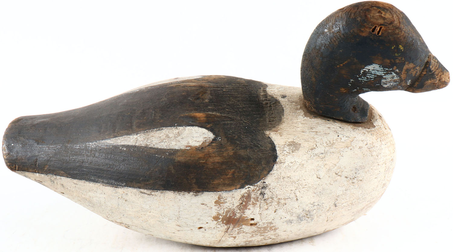 Goldeneye Drake by unknown maker, painted eyes, solid wood, original paint, structurally excellent. Grade: Very Good ++ - Value: 50 to 100