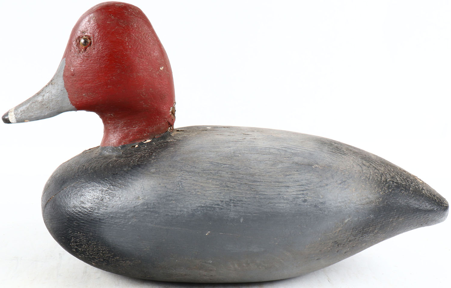 Redhead Drake by ? Glass eyes, solid wood, original paint, neck has crack in it. Grade: Very Good ++ - Value: 50 to 100
