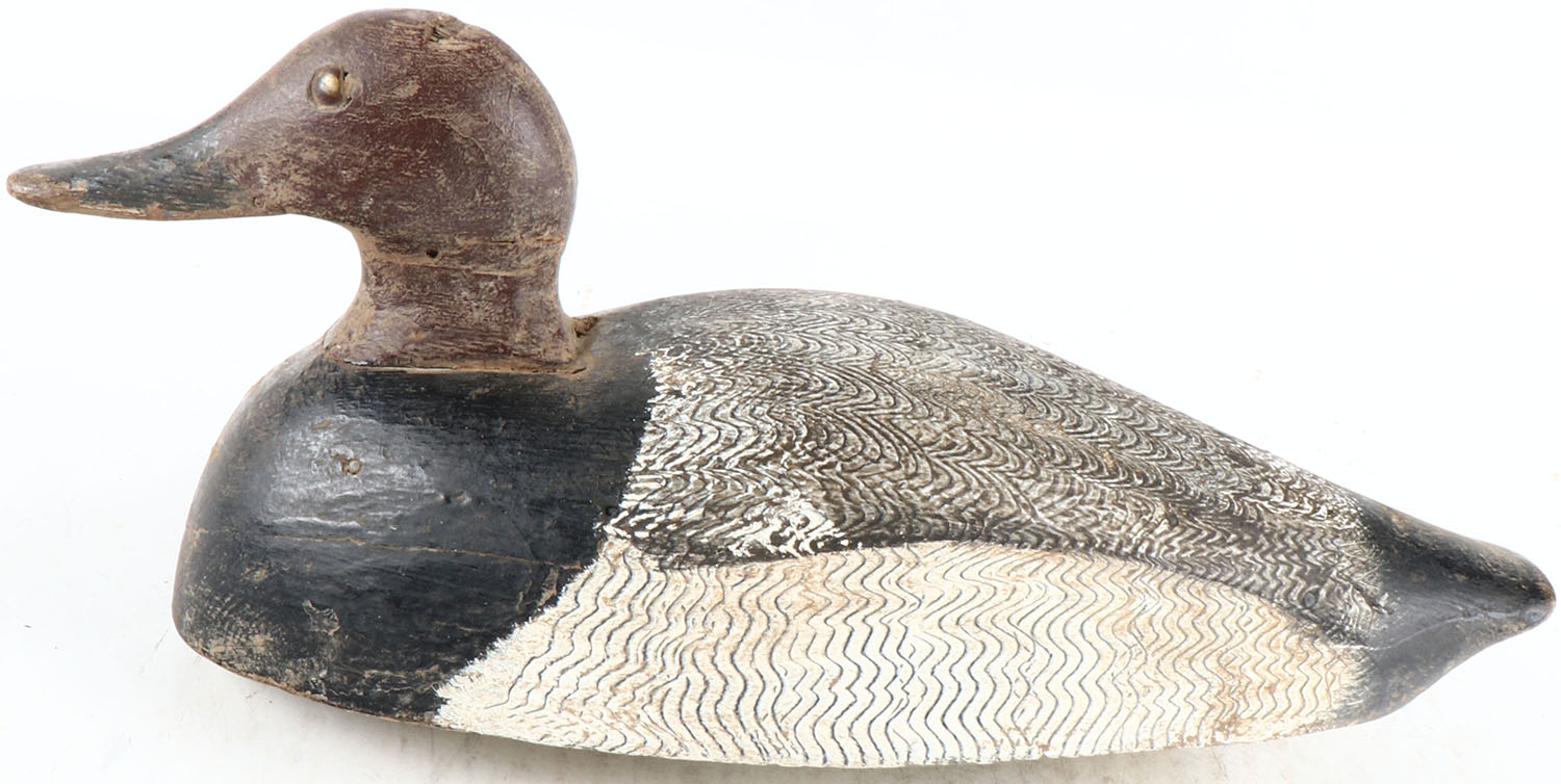 Redhead Drake by George Althouse ? Bloom Field Ont. Tack eyes, solid wood, original paint with comb painting, structurally excellent. Grade: Excellent - Value: 50 to 100