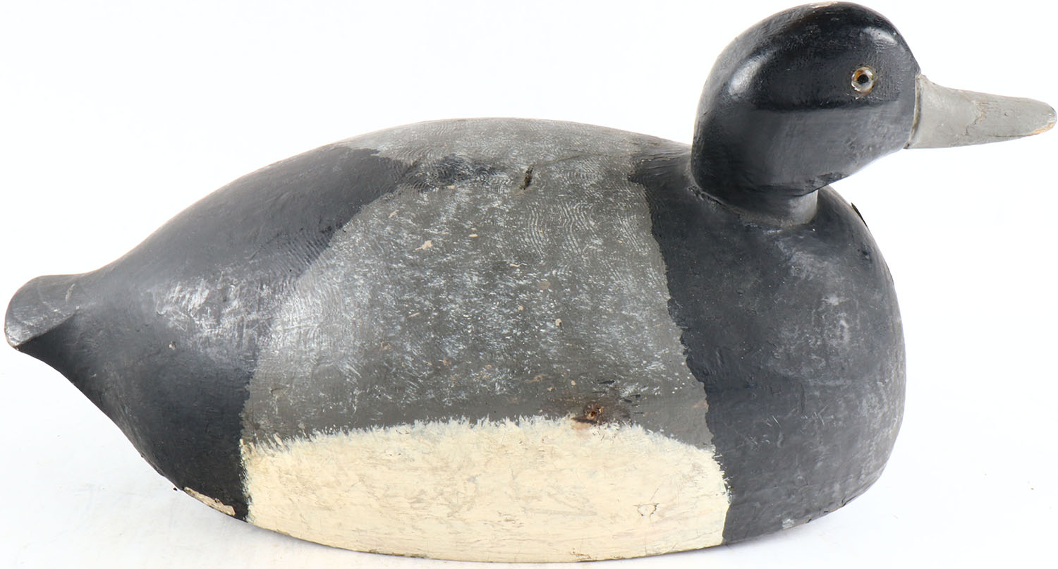Bluebill Drake by unknown maker, glass eyes, hollow wood, original paint, structurally excellent. Grade: Excellent + - Value: 50 to 100