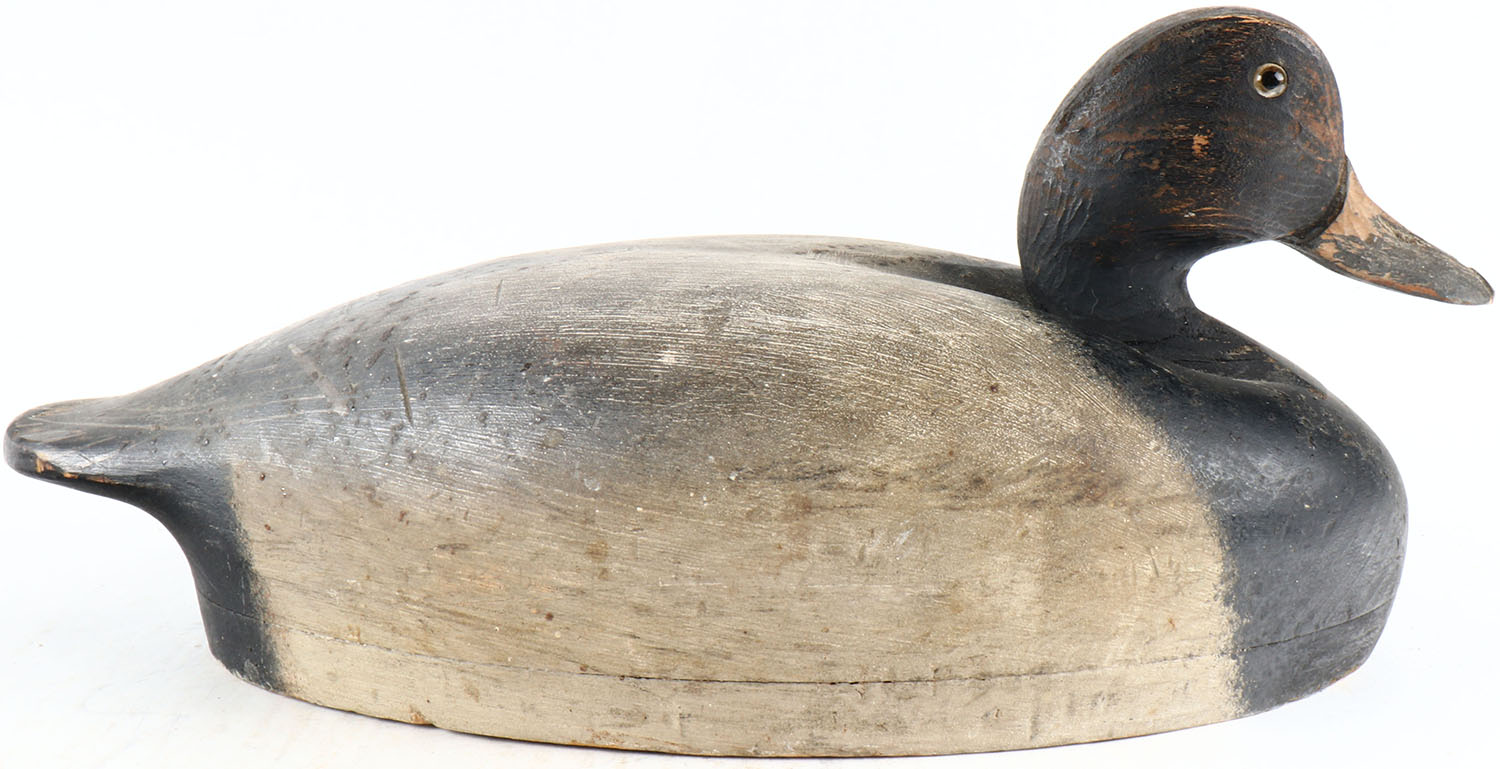Bluebill Drake by unknown maker, glass eyes, solid wood, original paint, structurally excellent. Grade: Excellent - Value: 50 to 100