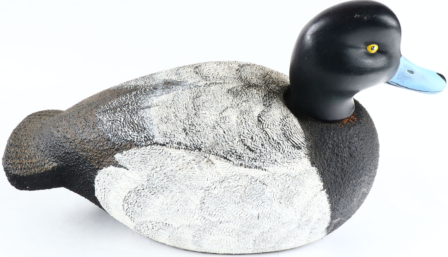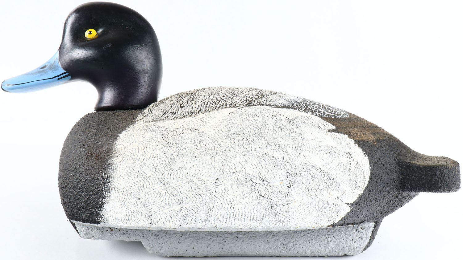 Bluebill Drake by unknown maker, painted eyes, solid cork body, original paint, structurally excellent. Grade: Excellent ++ - Value: 50 to 100