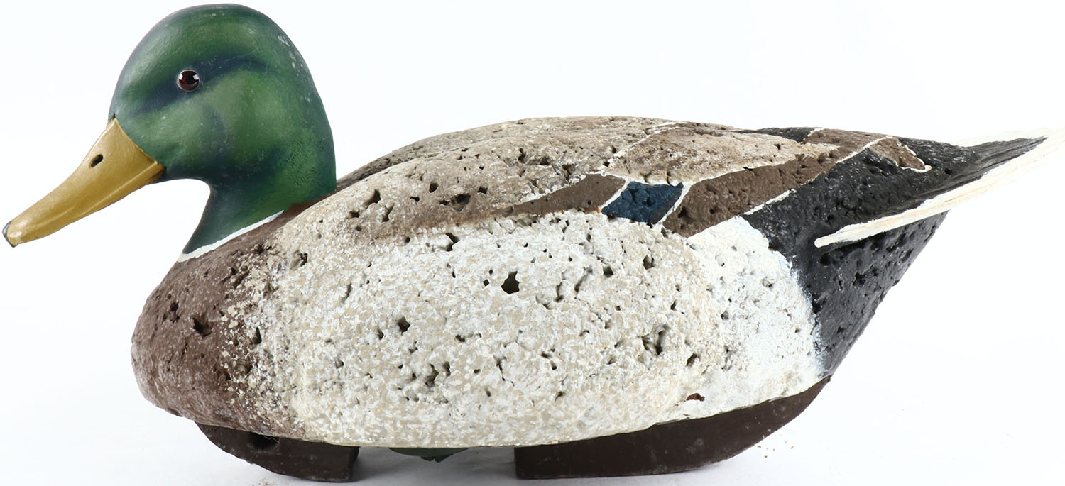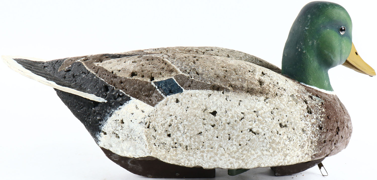 Mallard Drake by REP, glass eyes, solid cork body, original paint, structurally excellent, signed on bottom. Grade: MINT - Value: 50 to 100