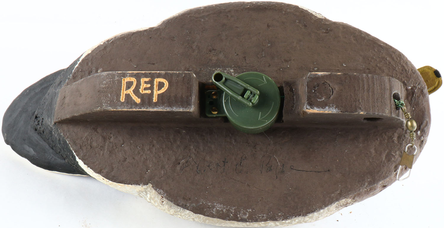 Mallard Drake by REP, glass eyes, solid cork body, original paint, structurally excellent, signed on bottom. Grade: MINT - Value: 50 to 100