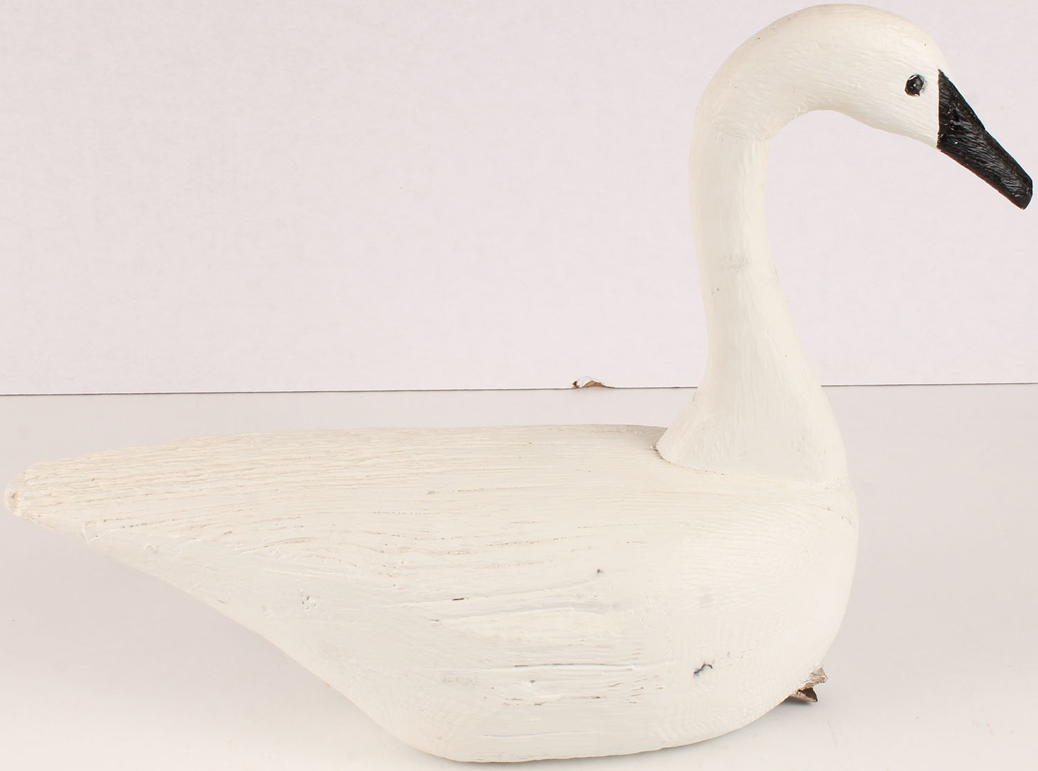 Swan by unknown maker, tack eyes, solid wood, original paint, structurally excellent, has age crack on bottom. Grade: Very Good ++ - Value: 50 to 100
