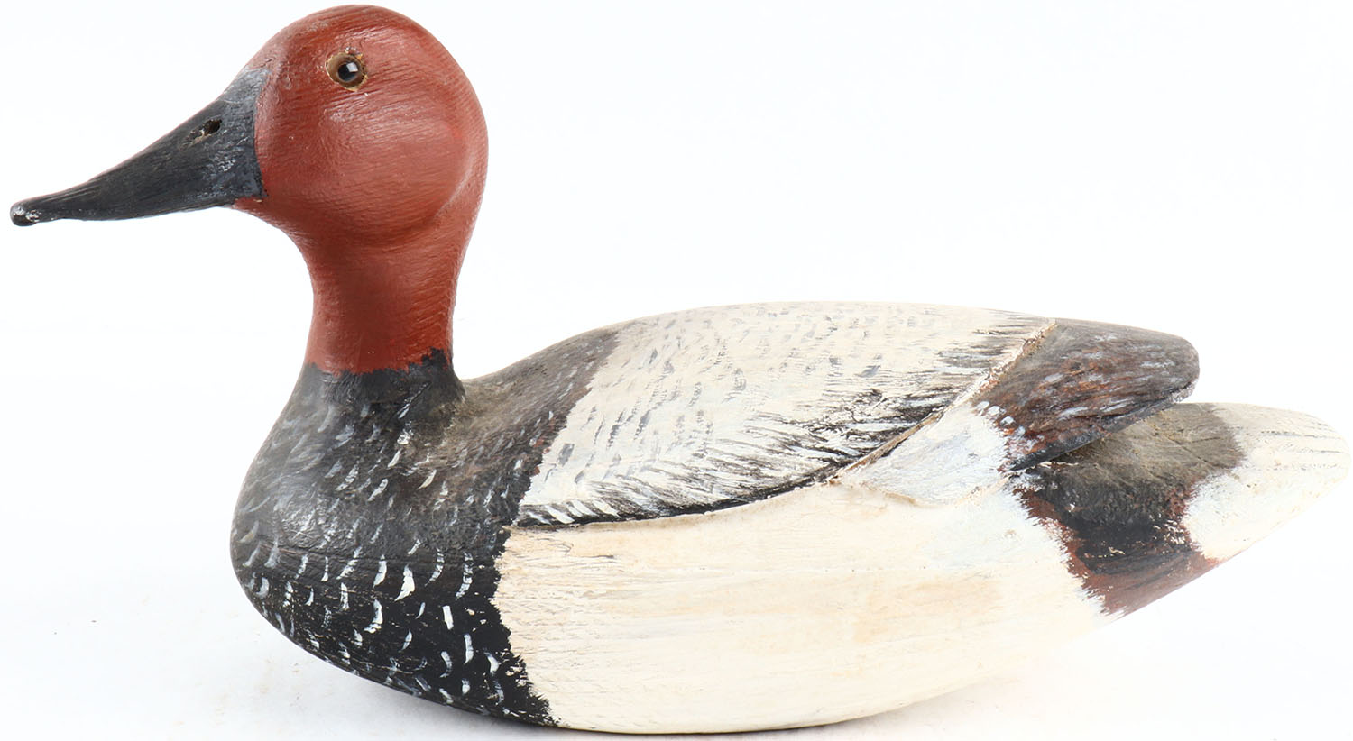 Canvasback Drake by R.F.P. glass eyes, one is missing, original paint. Grade: Very Good + - Value: 50 to 100