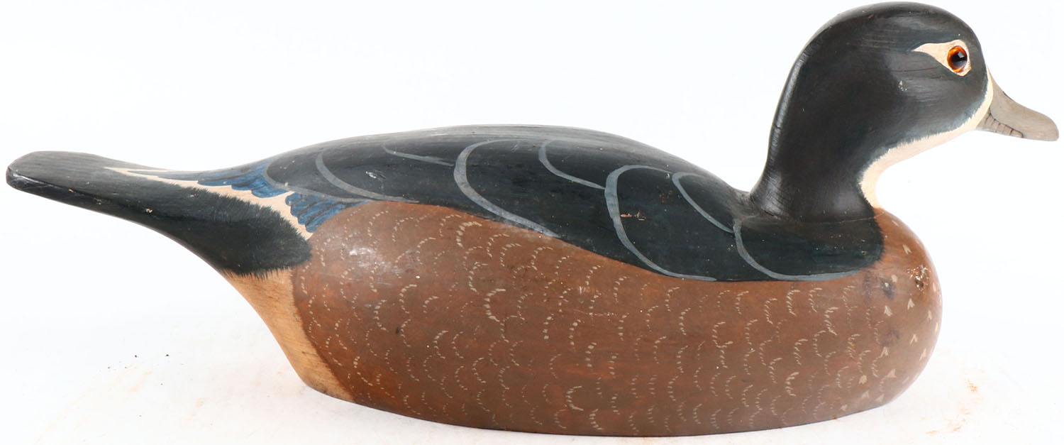 Woodduck Hen by unknown maker, glass eyes, hollow wood, original paint, structurally excellent. Grade: Excellent ++ - Value: 50 to 100