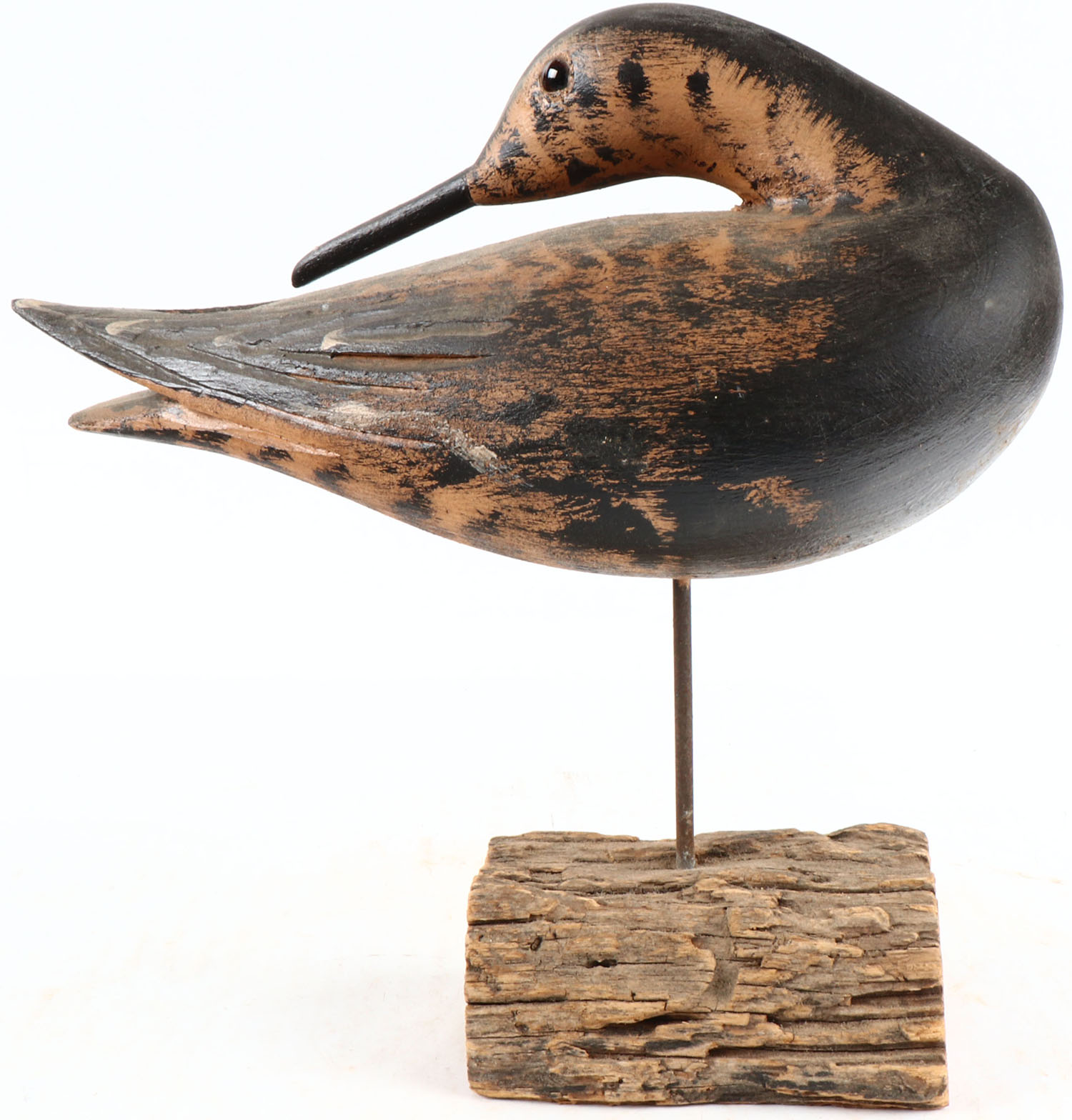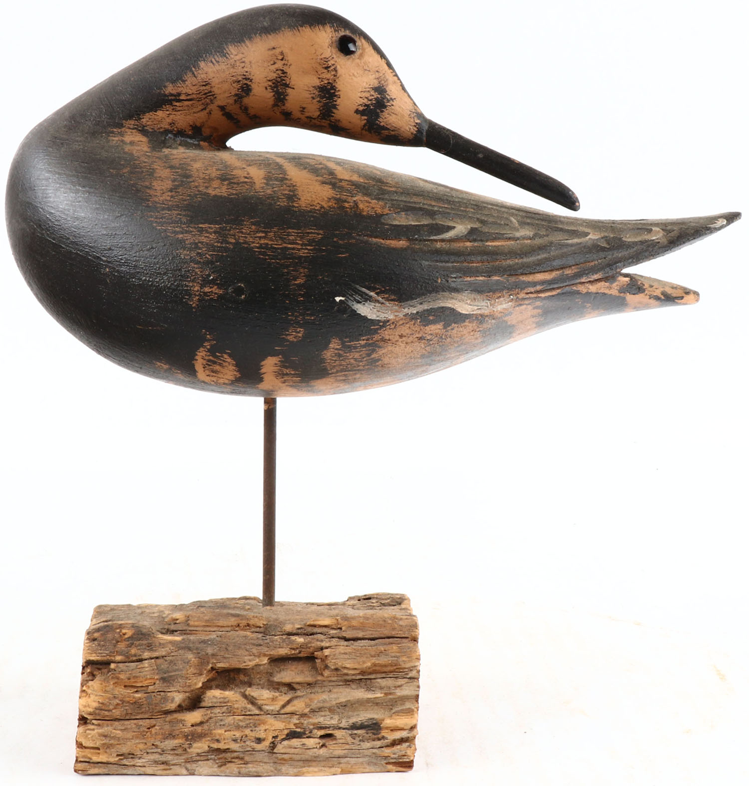 Black Bellied Plover by Jim Slack , glass eyes, solid wood on wood stand, original paint, structurally excellent. Grade: MINT - Value: 40 to 80