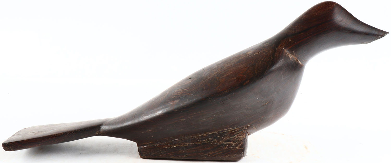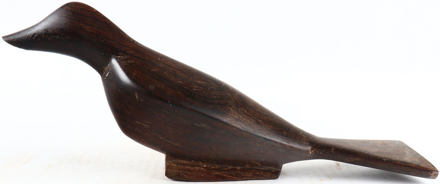 Bird by unknown maker, no eyes, solid iron wood, structurally excellent. Grade: Excellent + - Value: 30 to 60